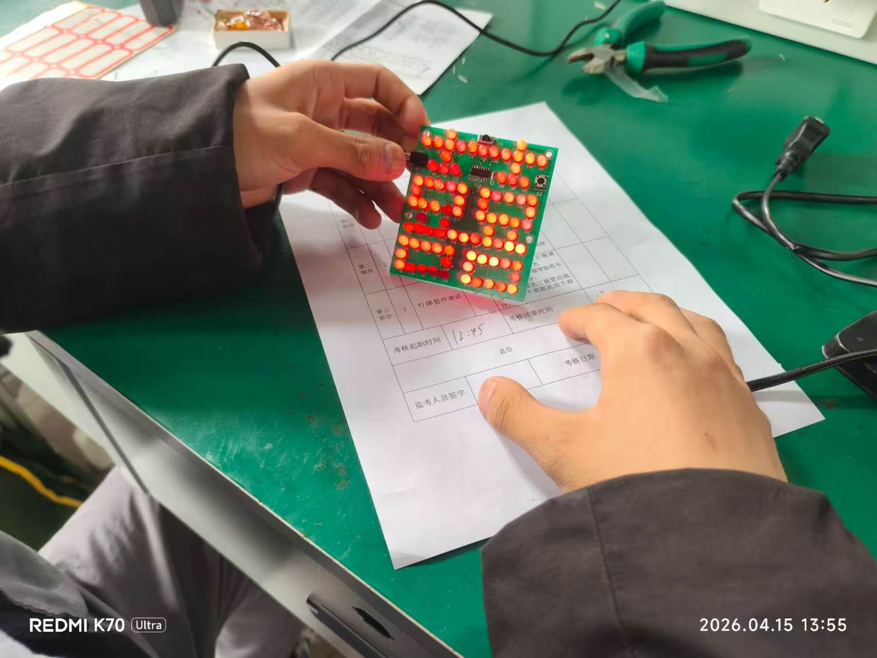 比赛现场,参赛选手们沉着冷静、专注投入,严格按照竞赛要求,将传统纹样、古典图腾等元素融入电路焊接中。他们手持焊枪,精准操控、细致焊接,在电路板上勾勒出兼具技术美感与古韵特色的图案,既考验了电子线路焊接的熟练度、精准度,也检验了对传统文化的理解与创新表达能力。