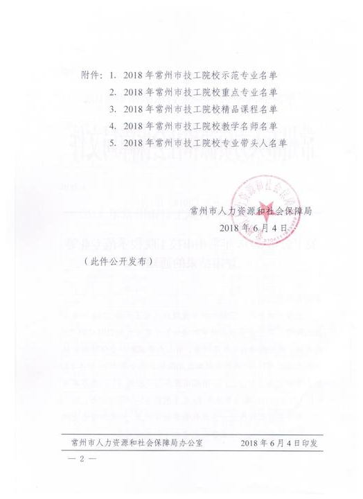2018年常州市技工院校示范专业等项目评审结果的通知