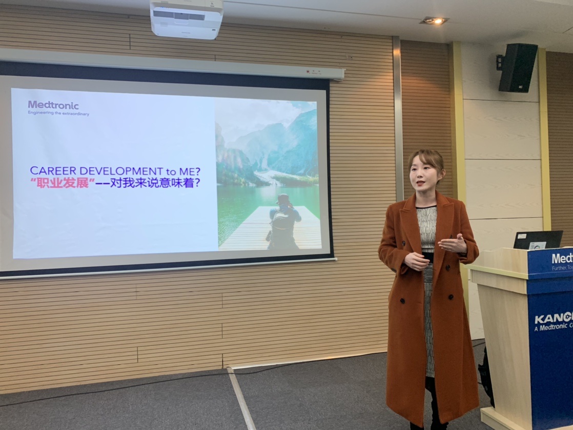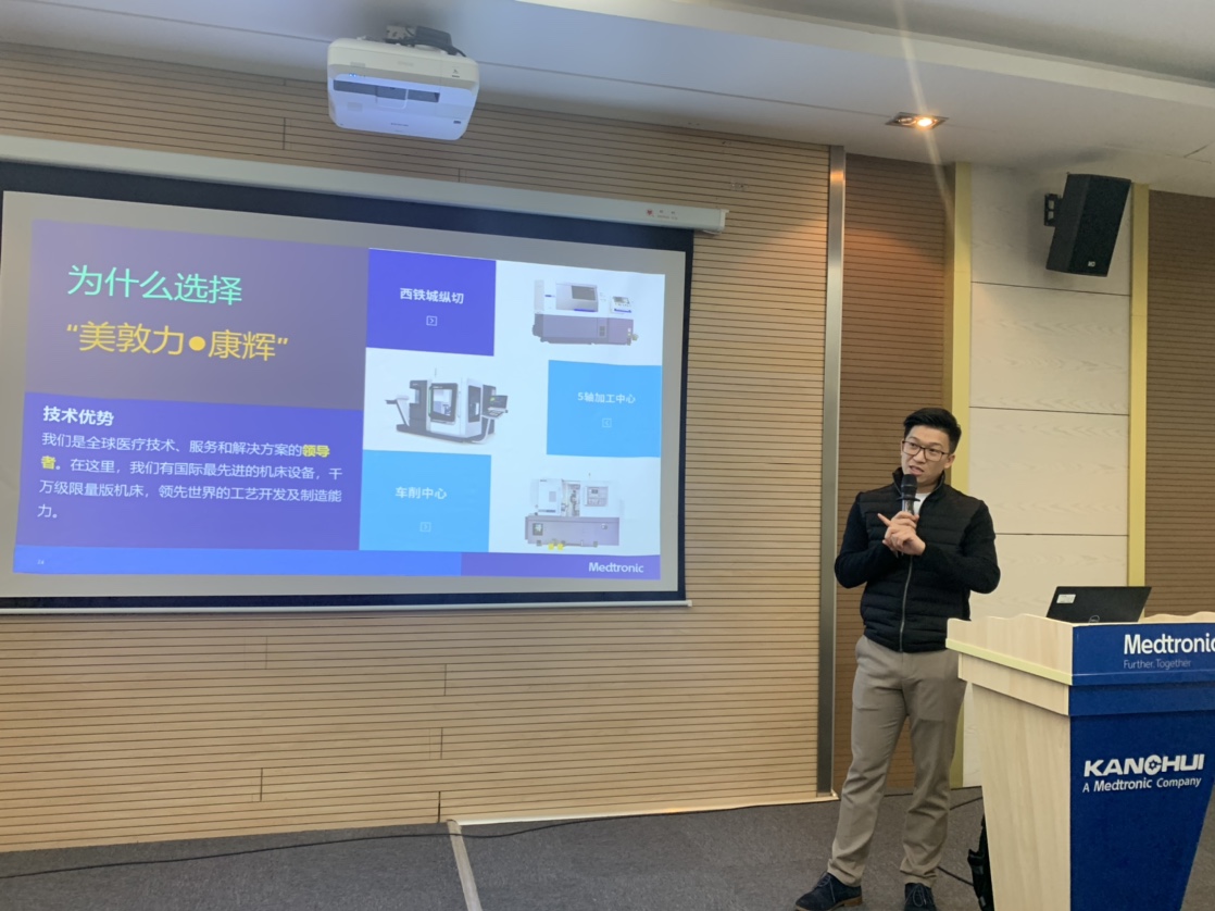 人力资源部经理张浩首先对同学们的到来表示欢迎,作为全球医疗技术的领导者,企业拥有国际最先进的设施与设备。在这里同学们将能够学到最先进的制造加工技术,有完整的职业发展通道和培养方案。随后,学习与职业发展部经理徐菁和同学们共同探讨了职业发展规划的重要性。最后企业邀请各个生产主管与同学们面对面交流,分享他们的职业经历,为同学们今后的成长道路提供了宝贵的意见。