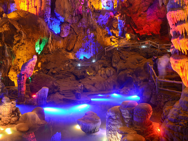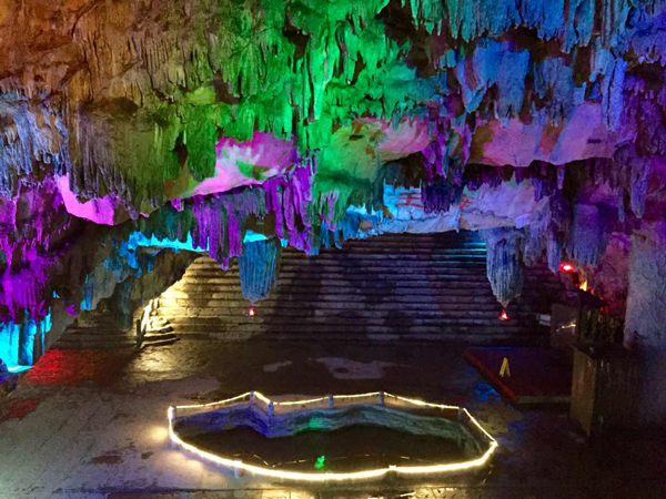 同学们下车到了此行的第一站——张公洞,又名庚桑洞,是著名石灰岩溶洞,该洞具大小洞穴达72个,各洞的温度又不相同,素有"海内奇观"之称。相传汉代张道陵曾在此修道,唐代张果老在此隐居,故称张公洞,被誉为“宜兴三奇”。