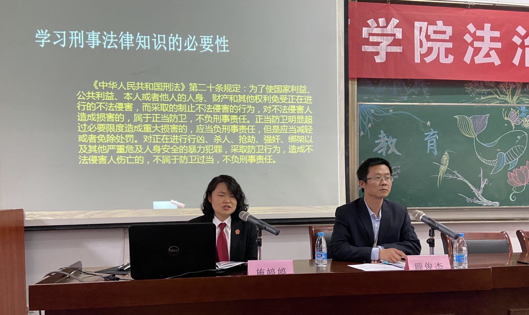 为进一步加强青少年学生的法律意识,做到知法、懂法、守法。针对我院实际情况,特邀请常州市中级人民法院施婷婷法官,于4月12日下午在15号楼1楼多媒体教室开展了青少年普法宣讲活动。