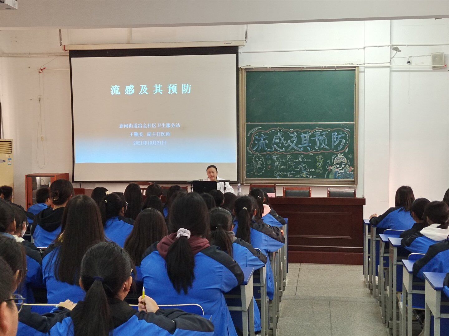 秋季是季节性及病毒性流感的高发季,尤其是天气冷暖变化无常,许多学生聚集在一个教室上课,非常容易产生流感并互相影响。为了加强学生的身体素质,提高学生预防流感的意识,学会合理的饮食和锻炼,学院于2021年10月21日下午三点,在一号多媒体开展了健康知识讲座(流感专题)