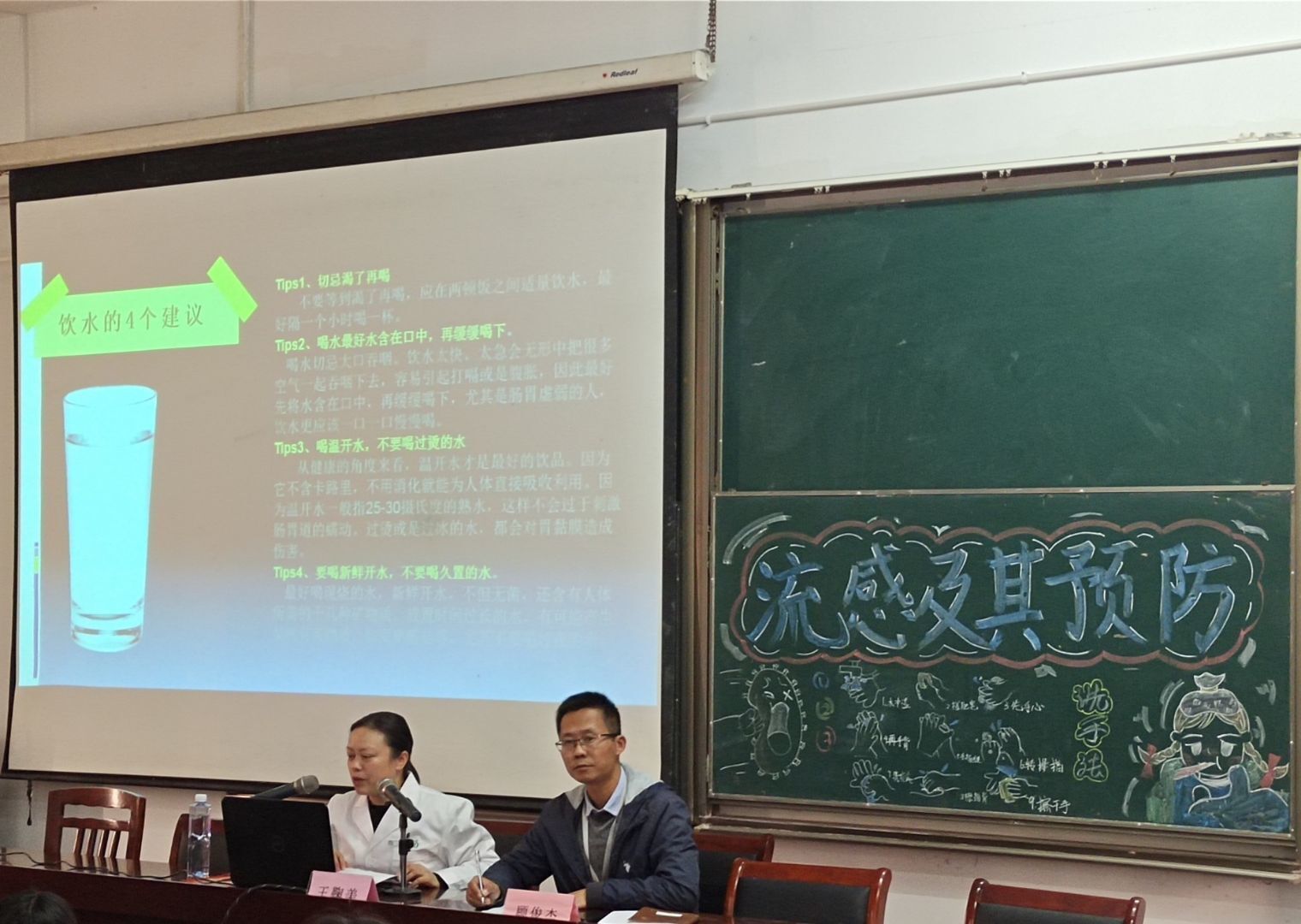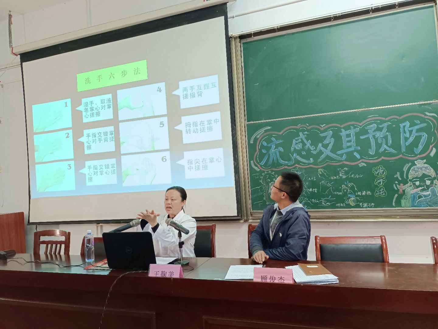 王医师从流感的产生、传播、危害及其预防方式等方面向学生全面的介绍了流感,并且对学生的卫生行为习惯也提出了要求,勤洗手,勤通风,多喝热水,注意保暖,真正切实做到保护好自己的个人健康安全。
