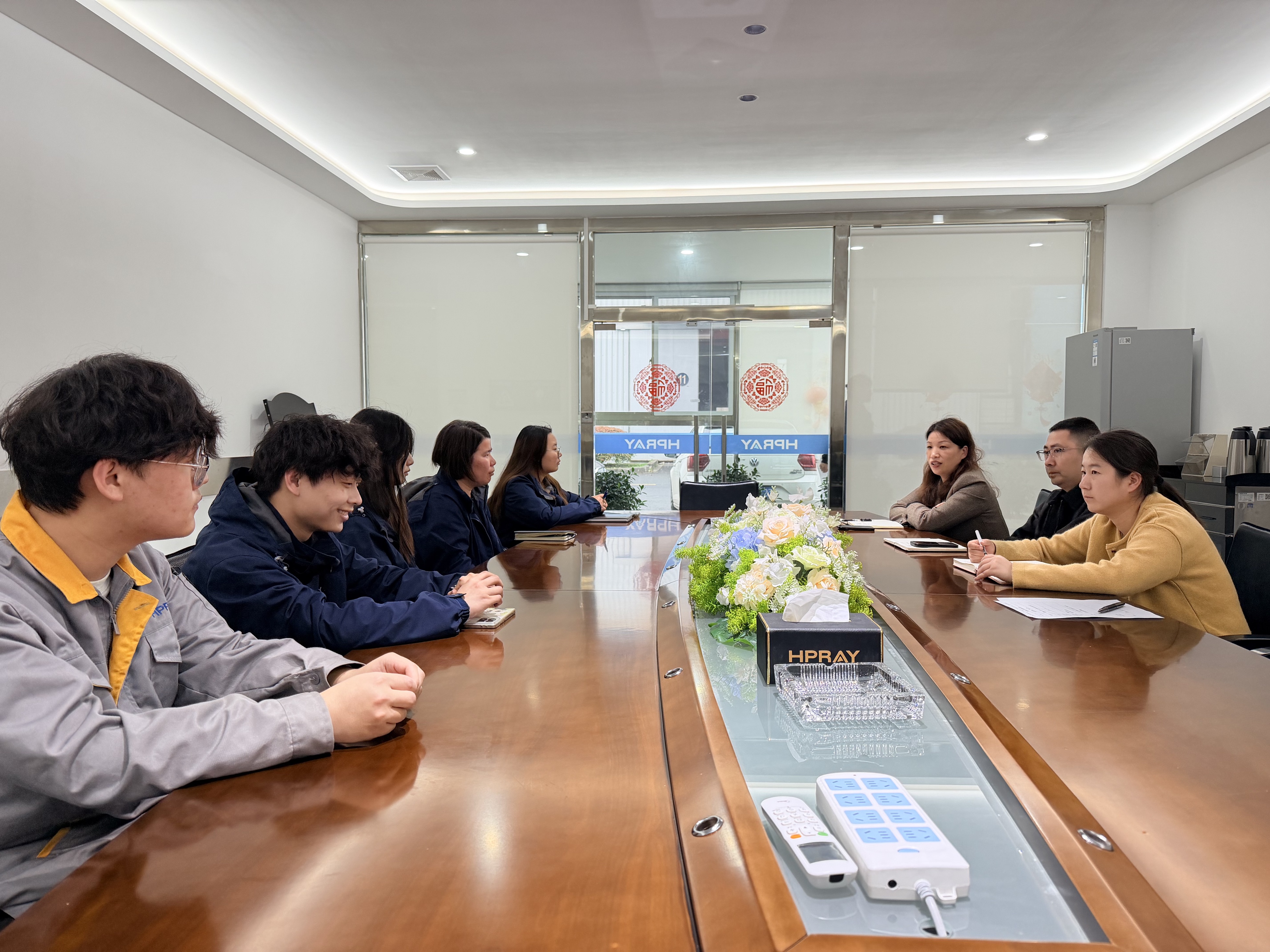 2026年4月16日14时,我院招生就业处景青兰主任、刘小雪老师及智能制造系主任吴连超、副主任樊伶俐到海普瑞(常州)洁净系统科技有限公司看望我院21级顶岗实习生。人力资源部夏经理热情接待。